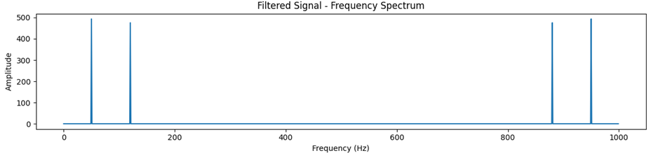 푸리에 변환 결과 50Hz와 120Hz에서 피크가 뜬다는 것을 알 수 있다. 이를 노이즈 제거에서 그대로 응용하면